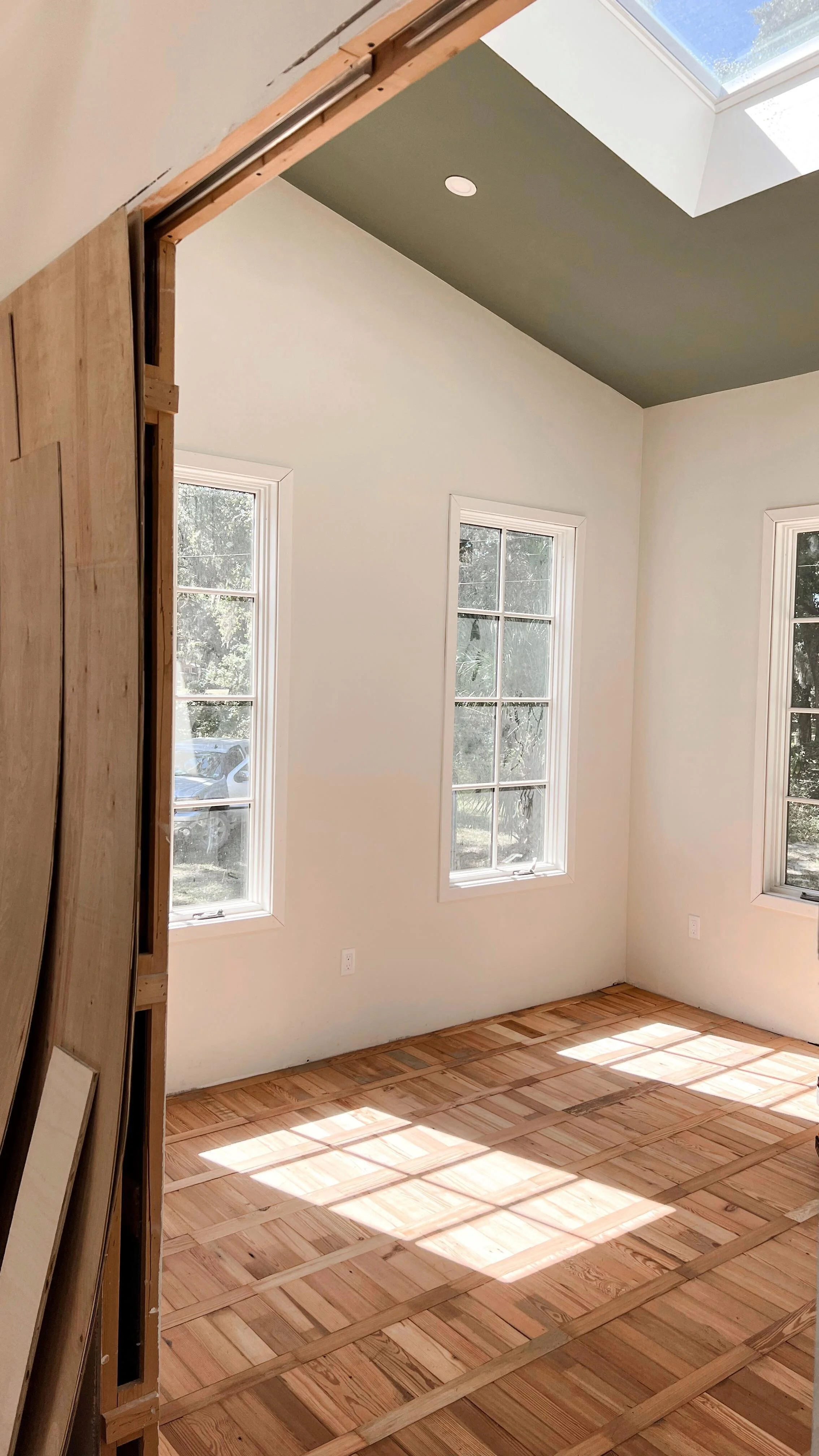 The mirrors also make our bedroom feel bigger. Since the back garden is located just off the bedroom stoop, we can see the reflection of the cottage and the outdoor shower through the French doors. It makes everything feel even more open and airy than it was to begin with— all without taking up any extra square-footage.